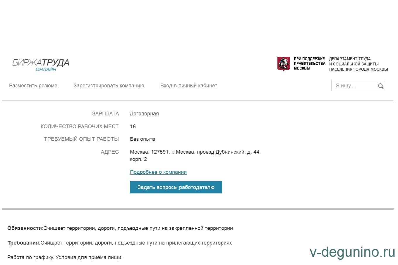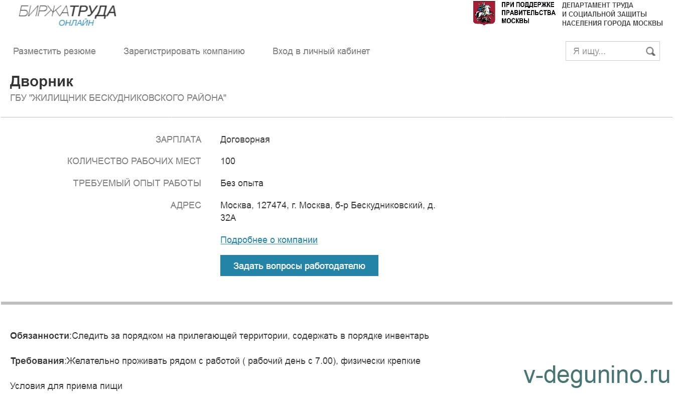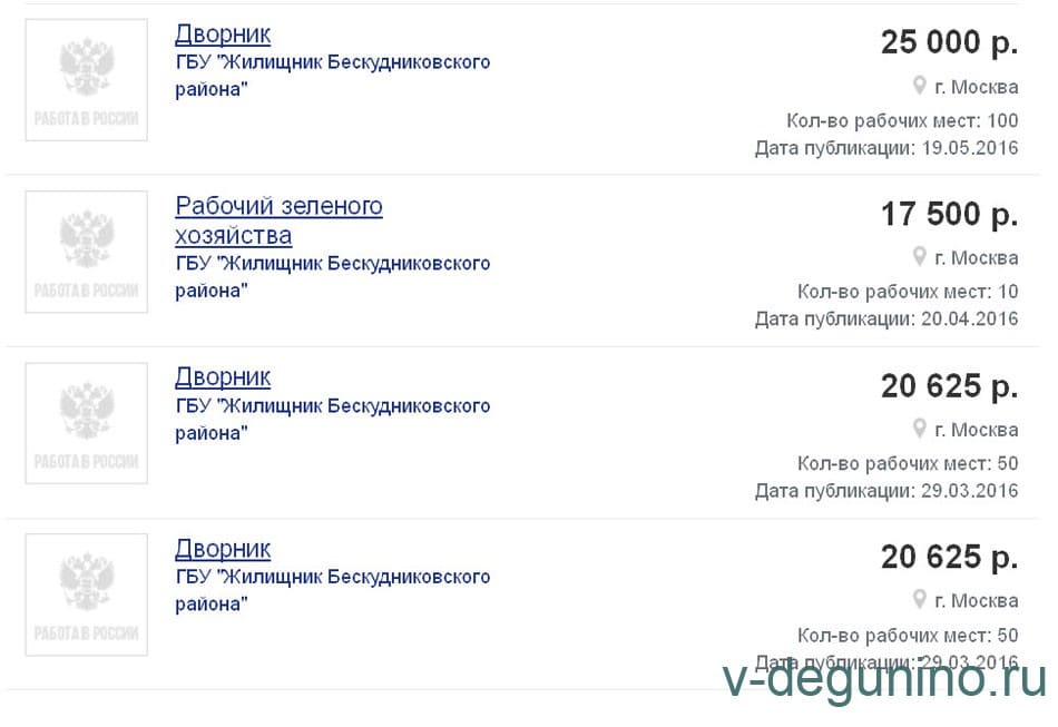 Вакансии ГБУ Жилищник района Восточное Дегунино