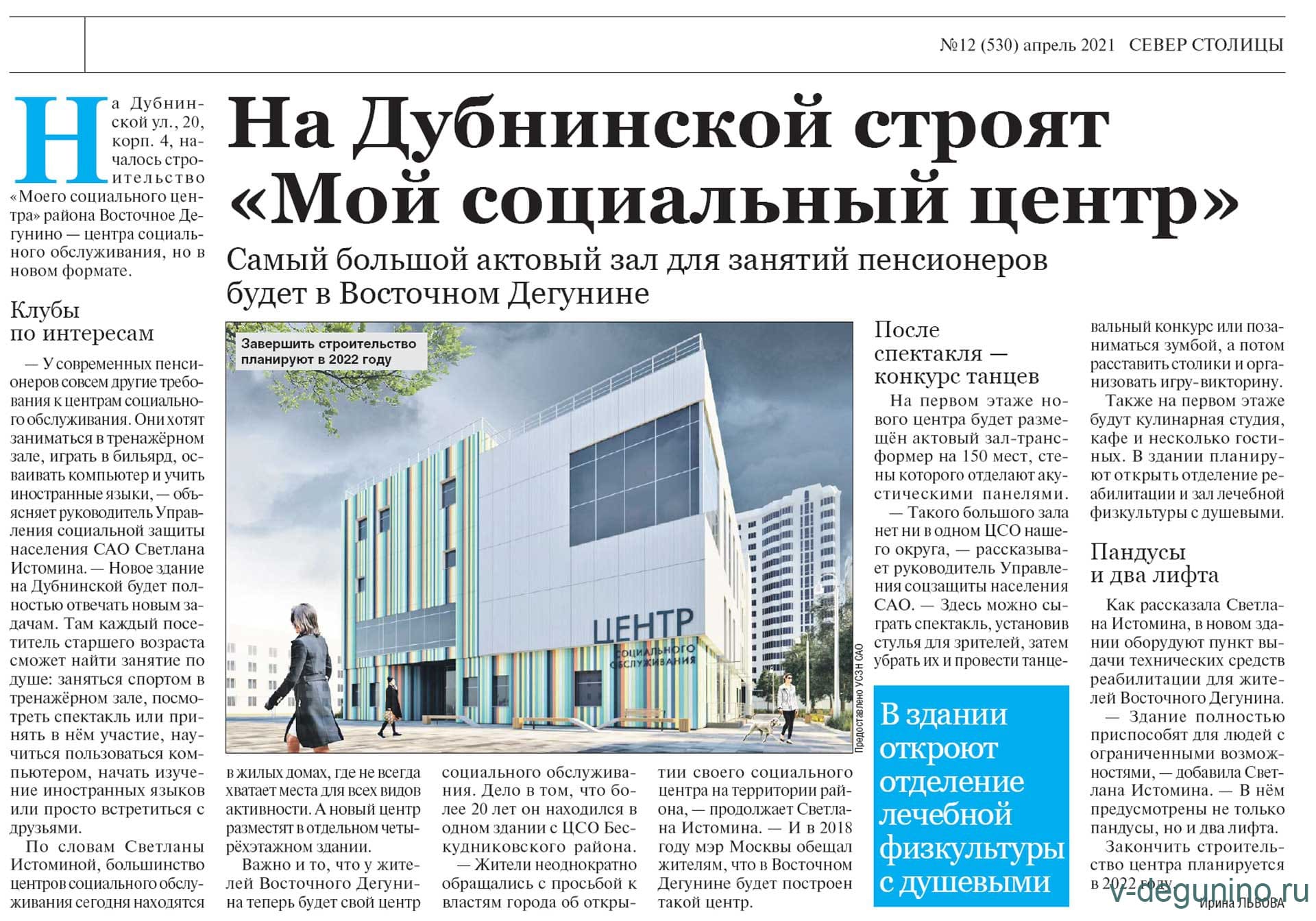 В Восточном Дегунине построили центр социального обслуживания