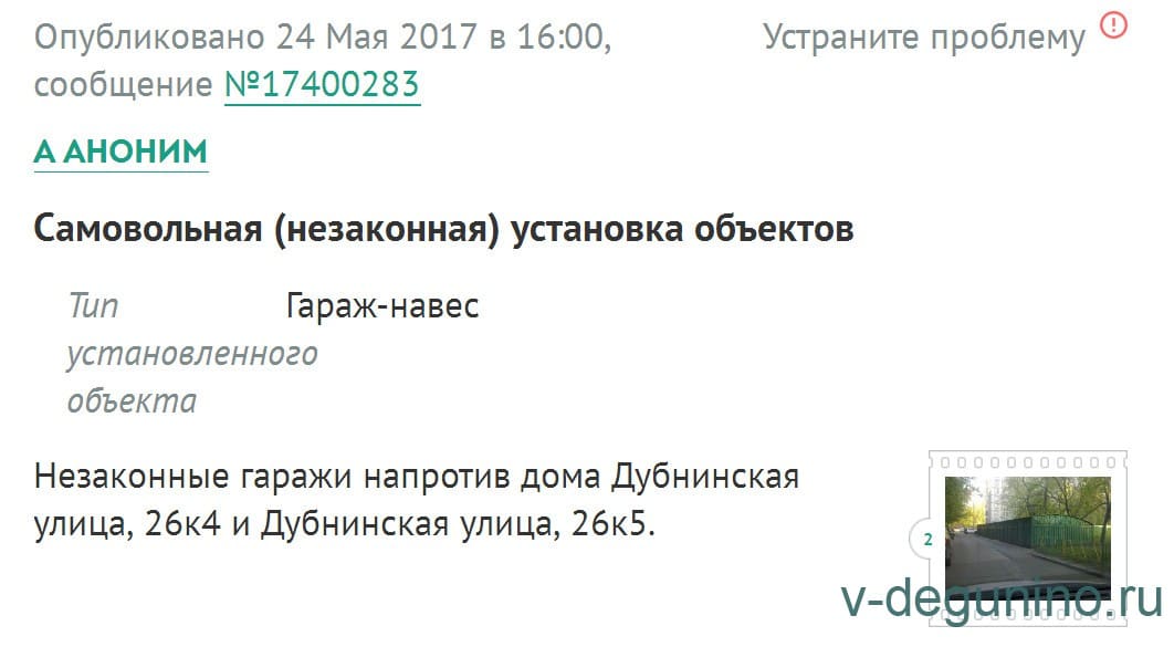У автора 1-е сообщение на портале, но потом управа и префектура будут активистов обвинять "это они нажаловались".