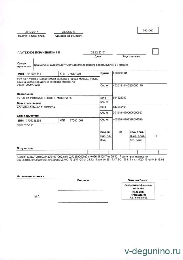 Наименование организации УПРАВА РАЙОНА ВОСТОЧНОЕ ДЕГУНИНО ГОРОДА МОСКВЫ