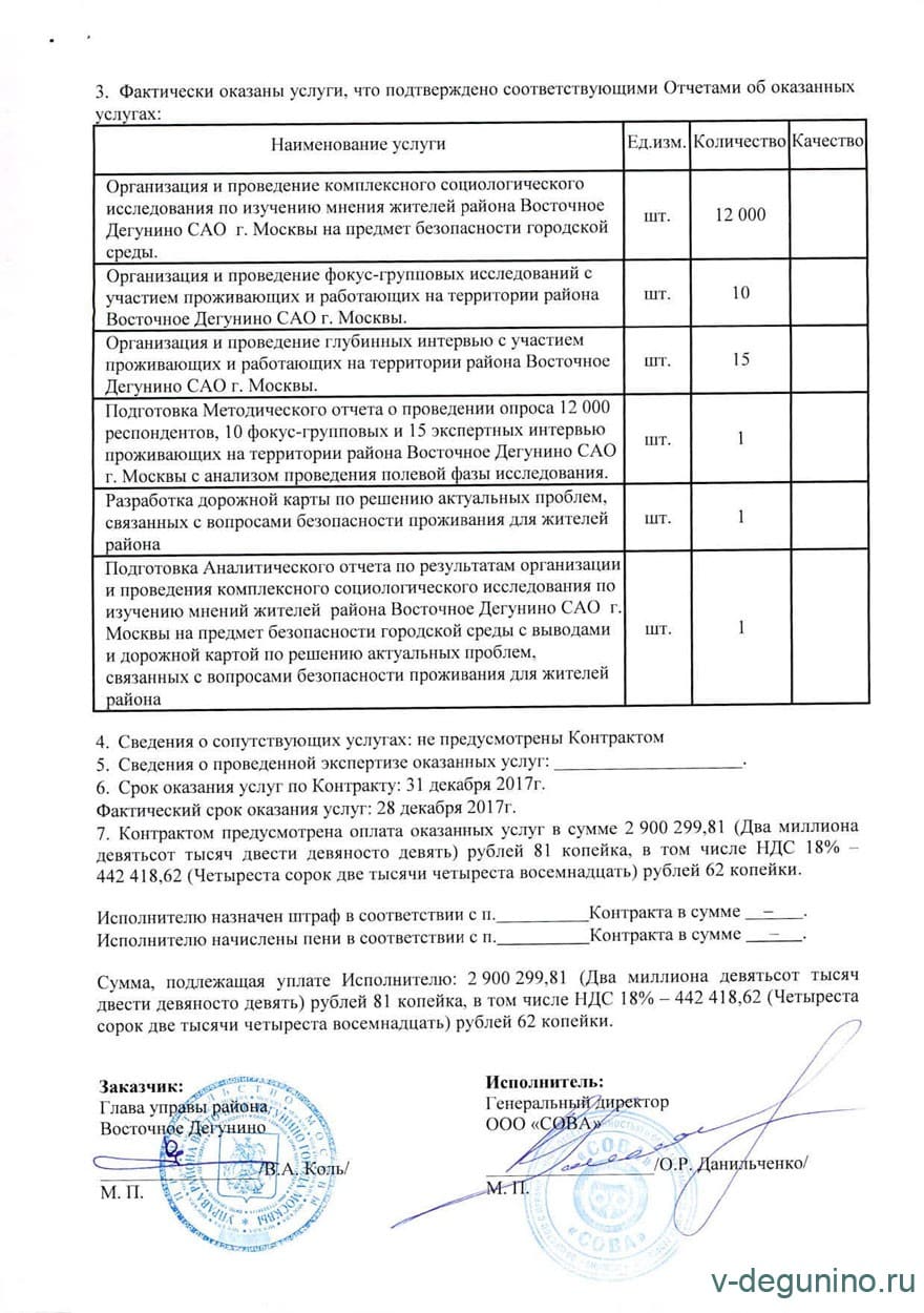 Оказание услуг по организации и проведению исследования по изучению восприятия жителями района «Восточное Дегунино» САО г. Москвы безопасности городской среды.