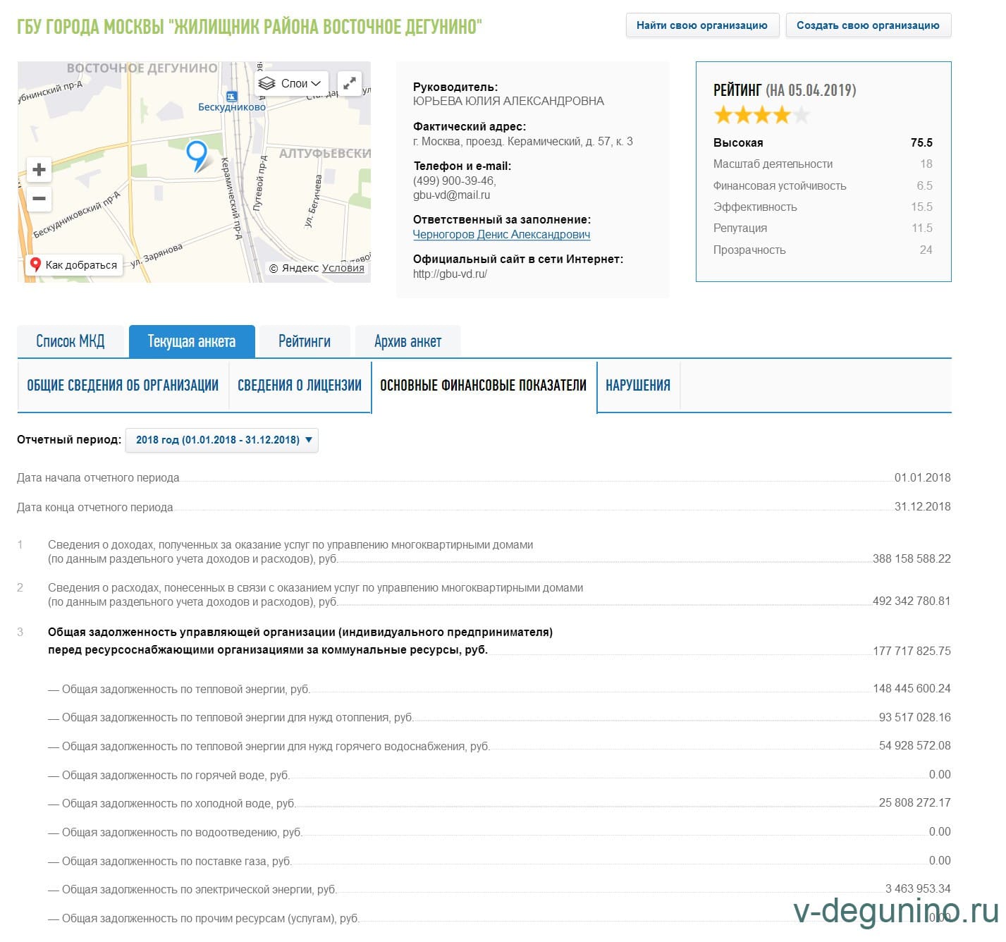 Долг управляющей организации (УО) ГБУ "Жилищник р-на Восточное Дегунино" перед ресурсноснабжающими организациями (РСО) за 2018 год 178 миллионов рублей.