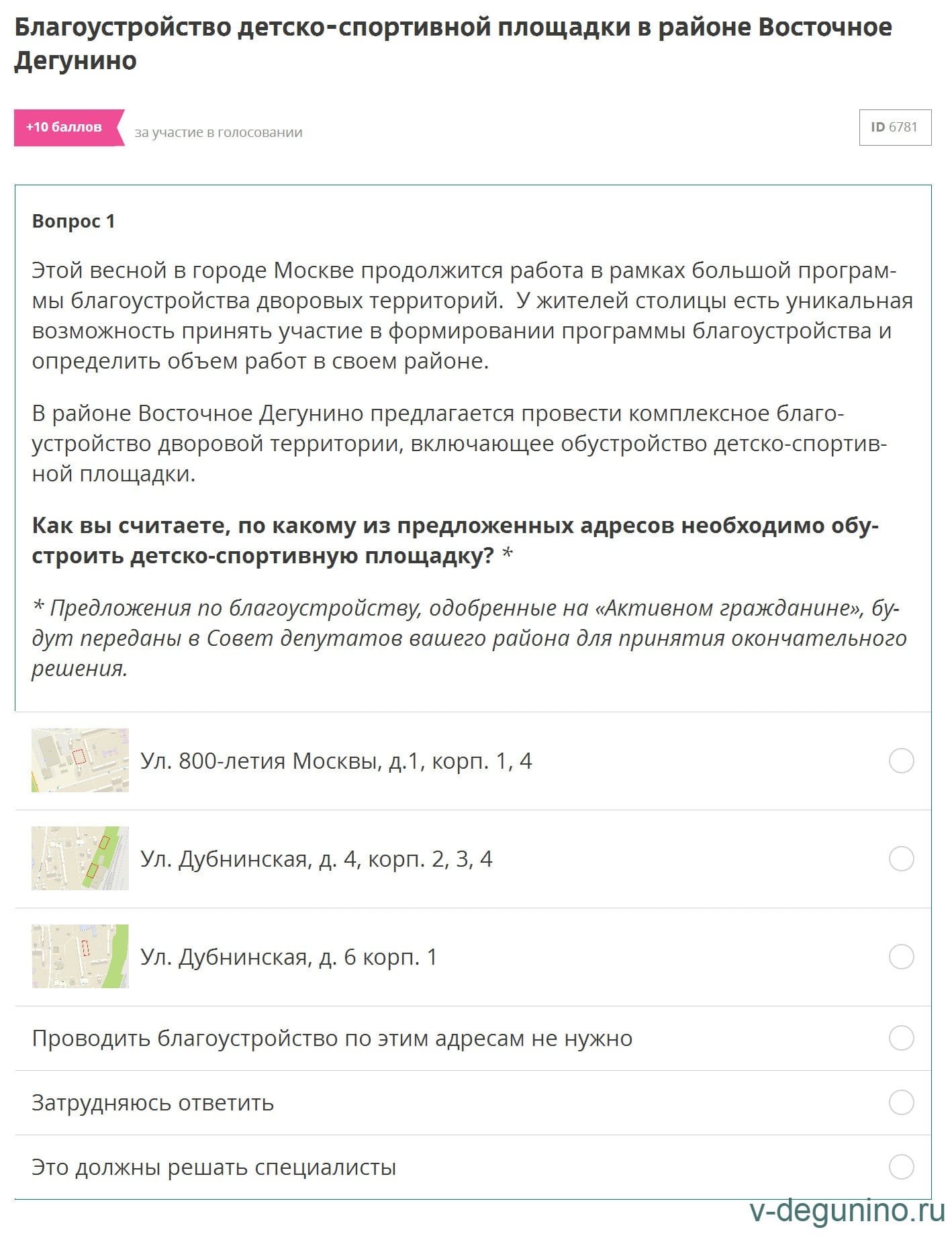 Голосование "Активный гражданин": Благоустройство детских площадок р-н Восточное Дегунино