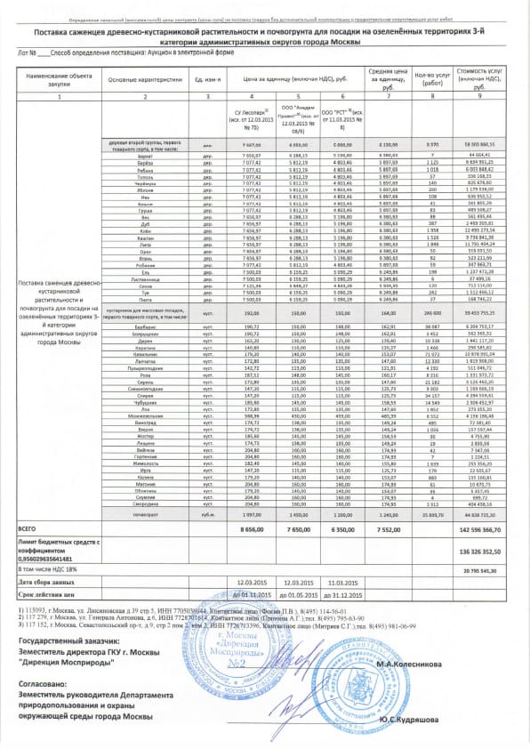 А это стоимость каждого дерева и кустарника
