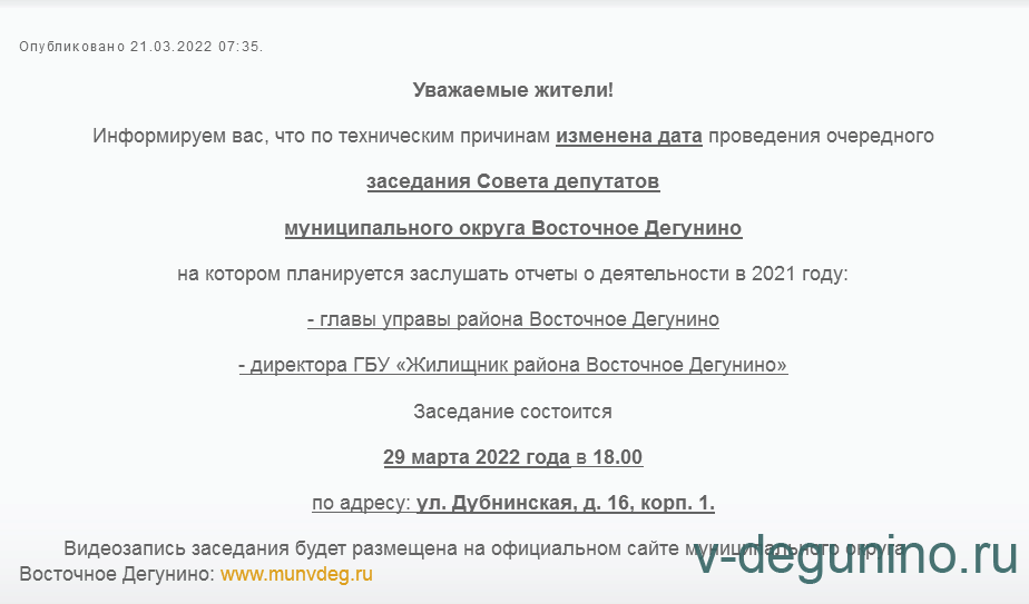 Ефанов Сергей писал(а):Источник цитаты - директора ГБУ «Жилищник района Восточное Дегунино»