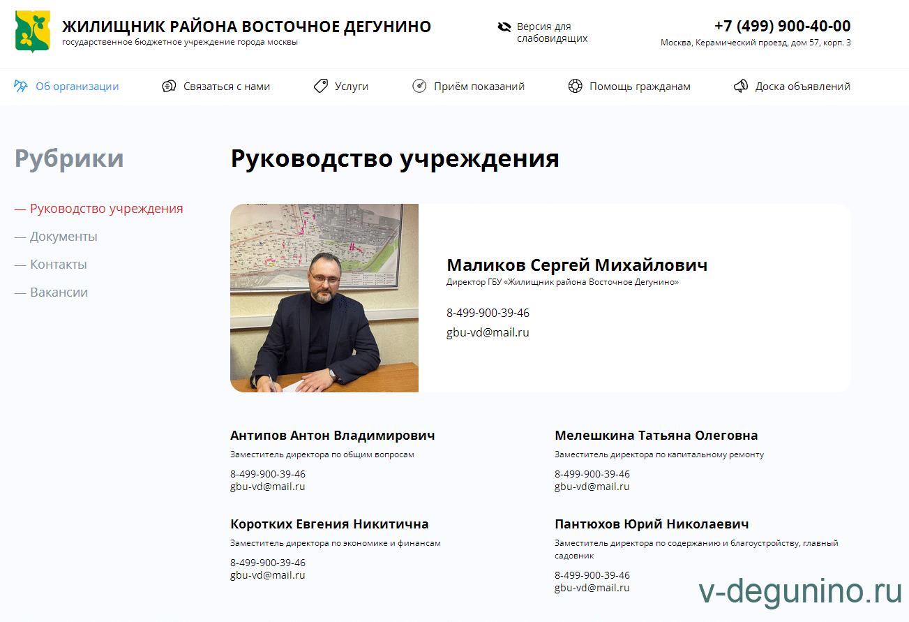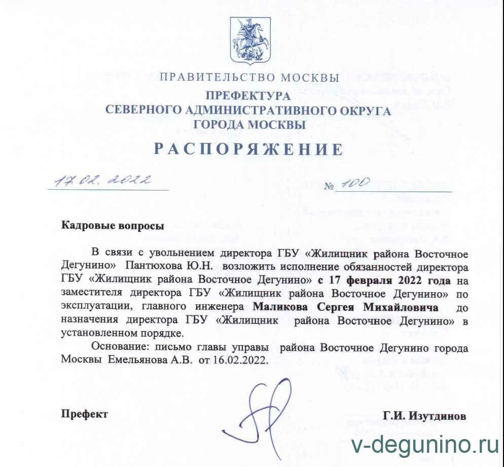 С 22 марта 2022 года и. о. Директора ГБУ "Жилищник района Восточное Дегунино" Амирамов Яков Михайлович.