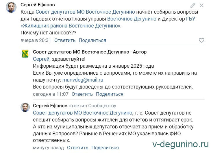Ефанов Сергей писал(а):Источник цитаты 1. Назначить заседание Совета депутатов внутригородского муниципального образования – муниципального округа Восточное Дегунино в городе Москве по заслушиванию информации директора ГБУ города Москвы «Жилищник района Восточное Дегунино» - о работе ГБУ города Москвы «Жилищник района Восточное Дегунино» в 2024 году на 25 февраля 2025 г.;