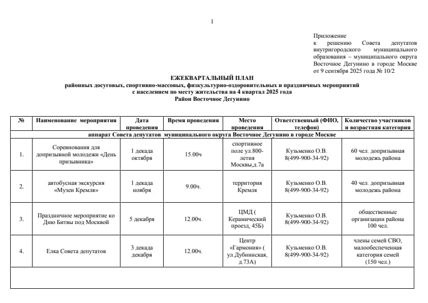 с населением по месту жительства район Восточное Дегунино на 4 квартал 2025 года.