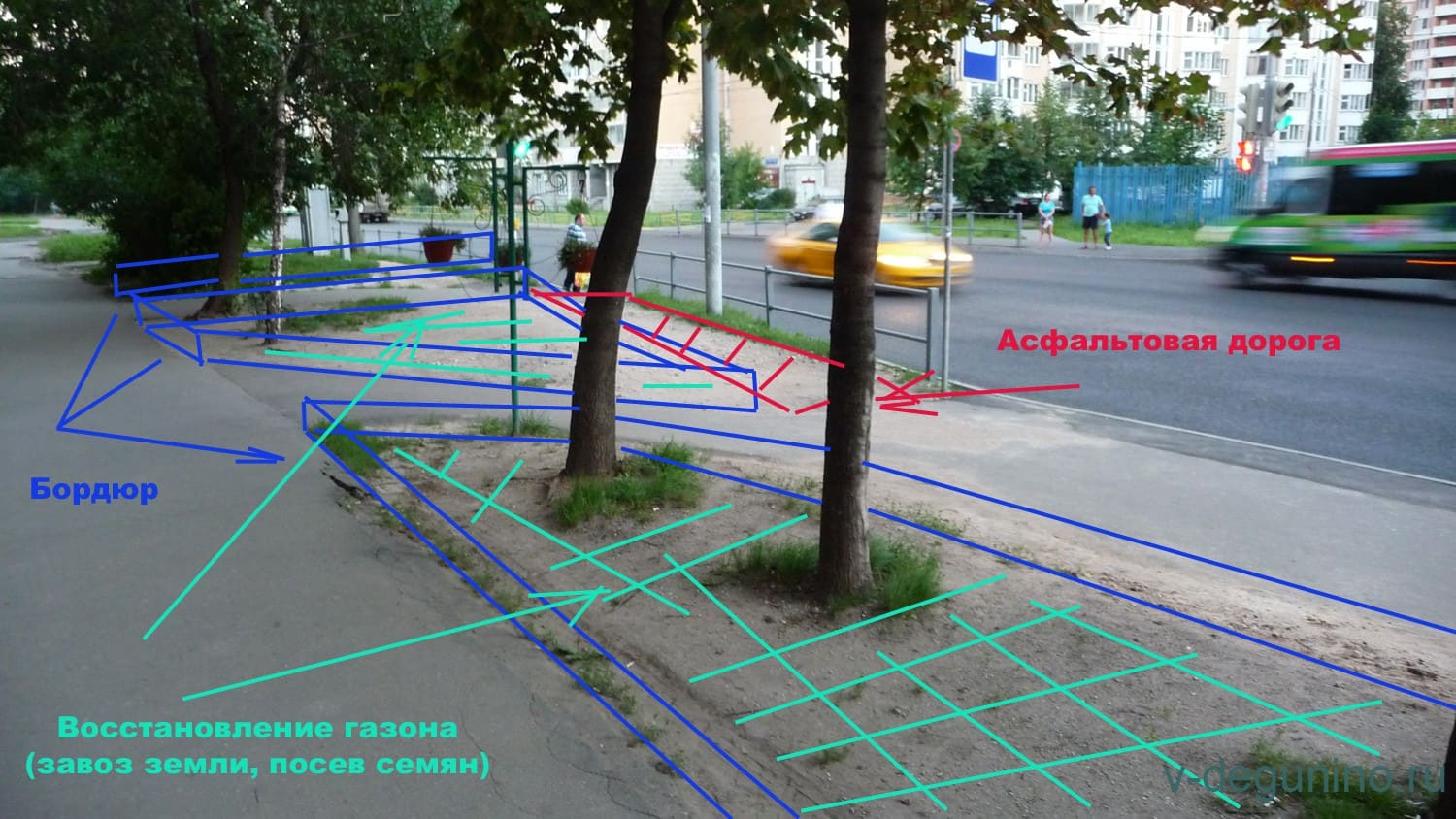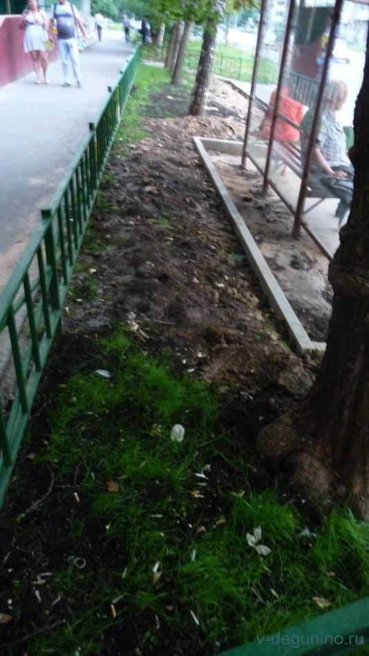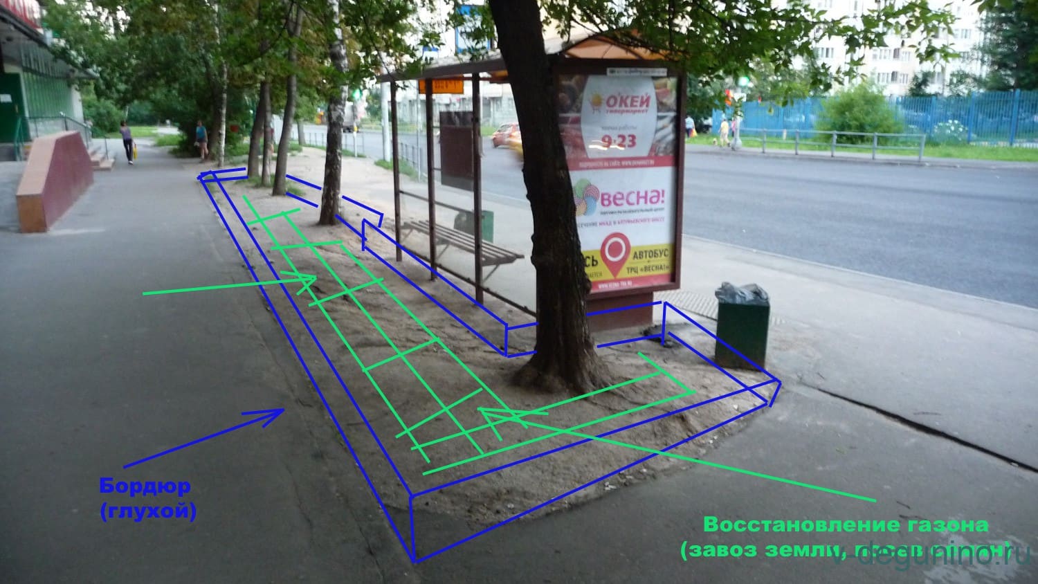 - в районе остановки нужно сформировать газон оградив его ГЛУХИМ бордюром и засыпав землю в него.