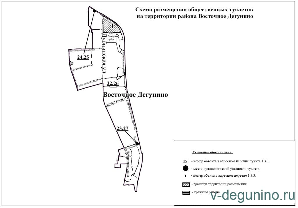 Схема размещения туалетов в Восточное Дегунино до 2016 г.