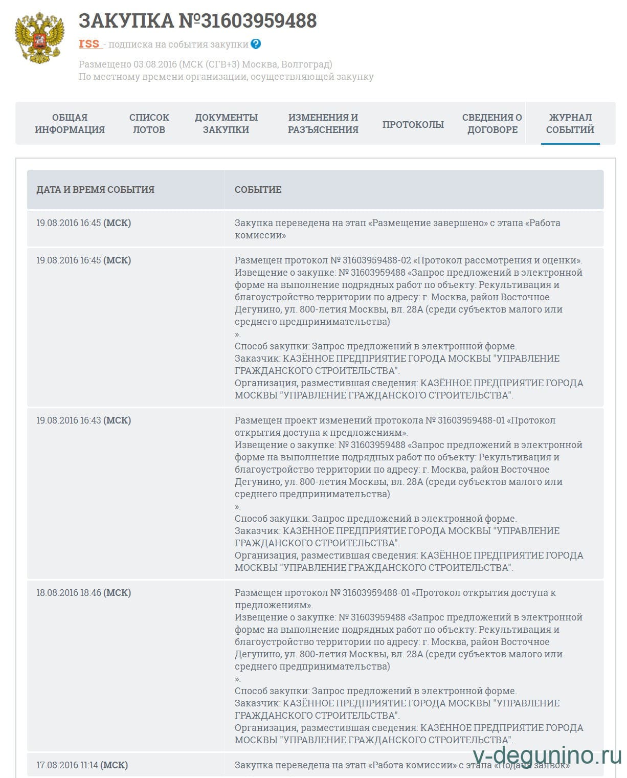 Закупка № 31603959488 от 03.08.2016 г.
