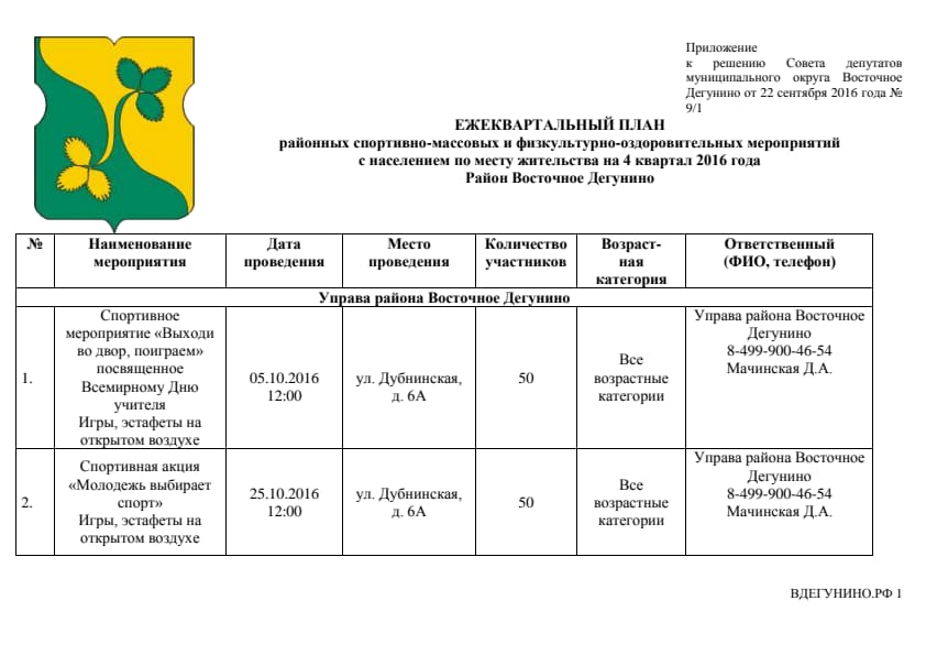 районных спортивно-массовых и физкультурно-оздоровительных мероприятий