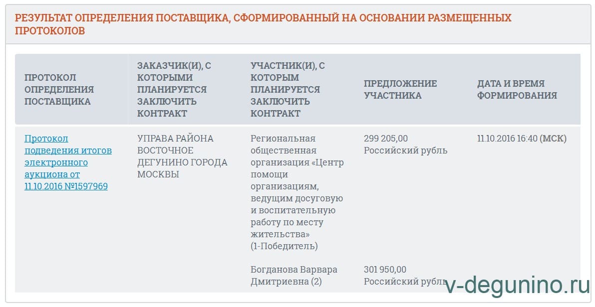 Оказание услуг по организации и проведению спортивных мероприятий для населения района Восточное Дегунино в 2016 г.