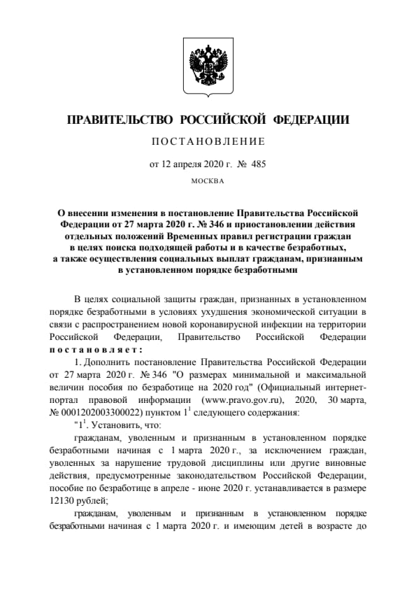 ППРФ 485 от 17.04.2020 г.: