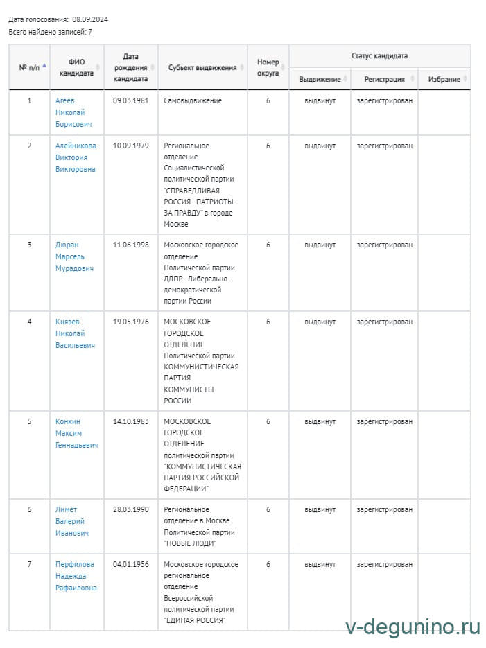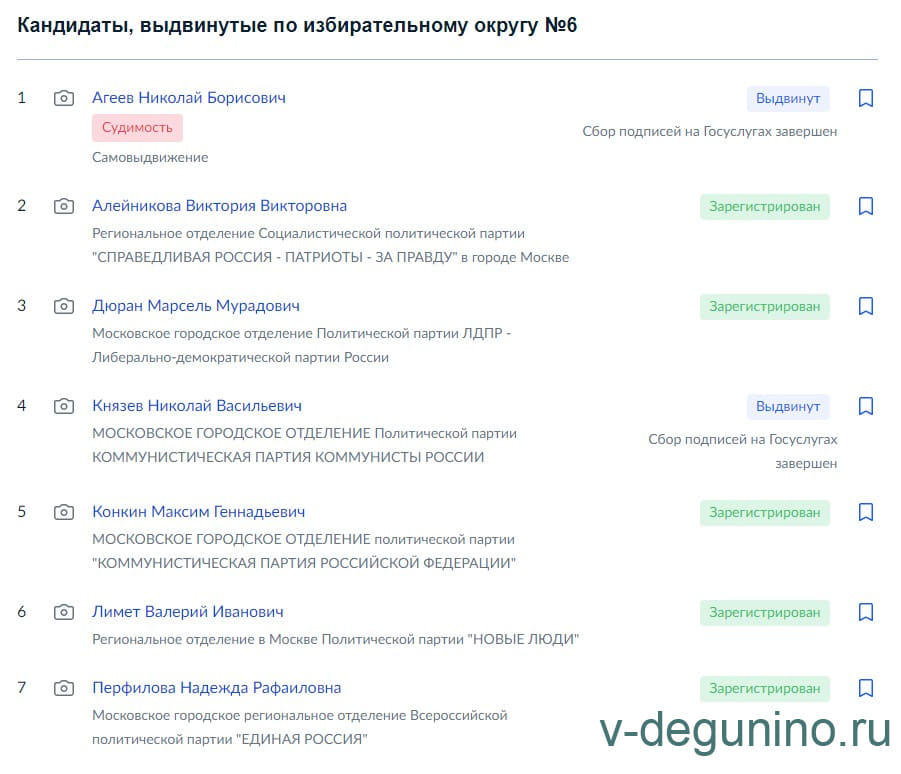 Кандидаты в депутаты в Мосгордуму по 6 избирательному округу