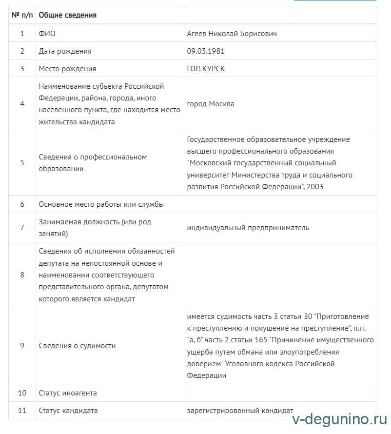 Так-же напомню, что кандидат-самовыдвиженец не указал своего образования.