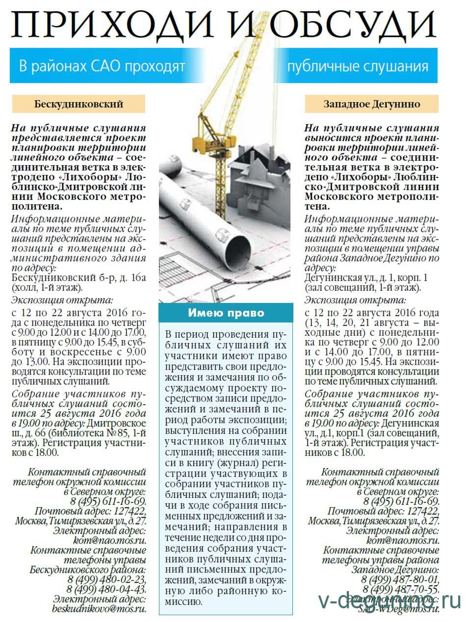 25 августа Публичные слушания в Бескудниковский и Западное Дегунино