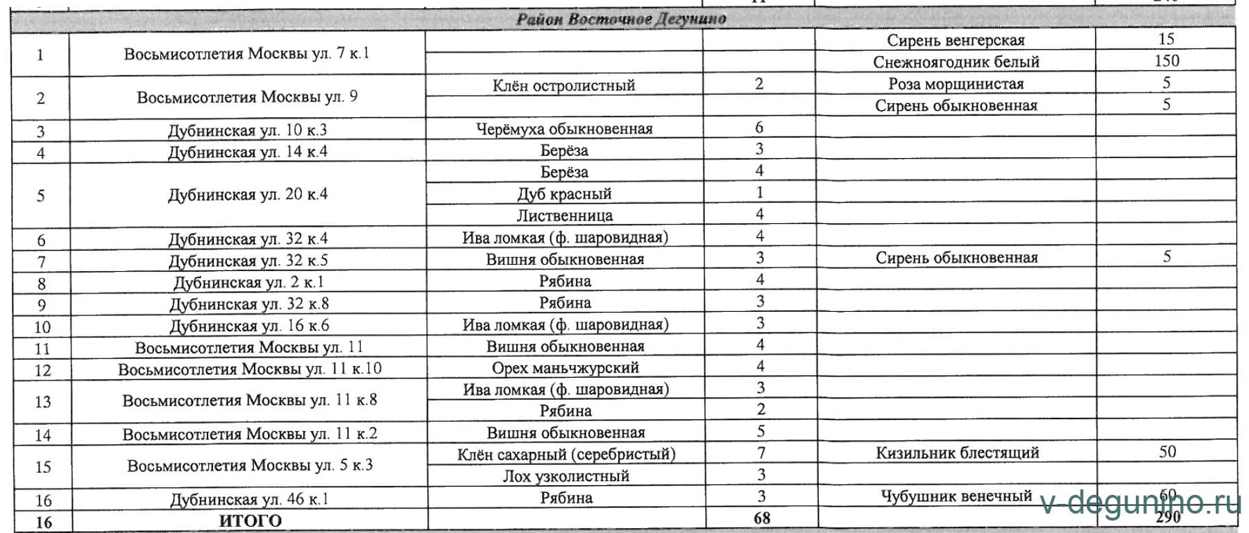 Посадка деревьев и кустарников на объектах озеленения 3-й категории на территории Северо-Восточного административного округа города Москвы (осенний период)