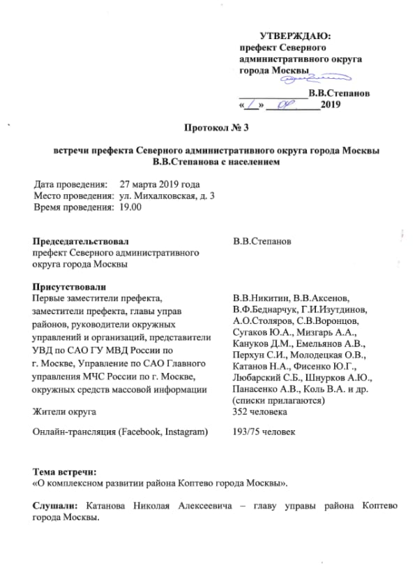 Ефанов Сергей писал(а):Источник цитаты 27.03.2019 г. ежемесячная встреча жителей с префектом САО Степановым Владимиром Викторовичем.