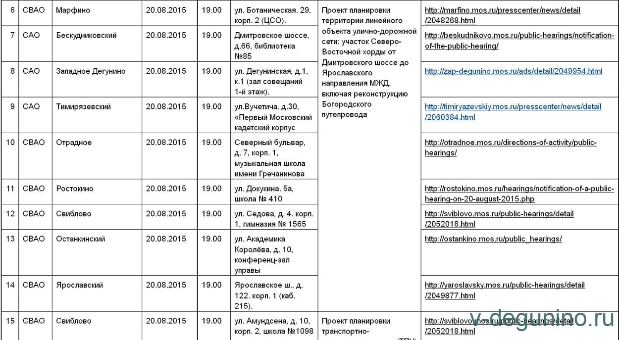 20 августа 2015 г. пройдут собрания Публичных слушаний по Северо-Восточной хорде в районах САО и СВАО города Москвы.