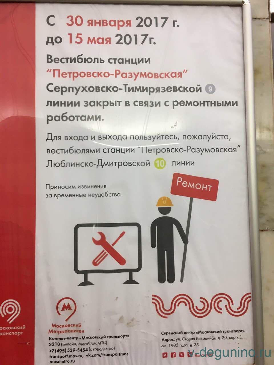 С 30 января 2017 года на реконструкцию закрывается старый вестибюль станции «Петровско-Разумовская»