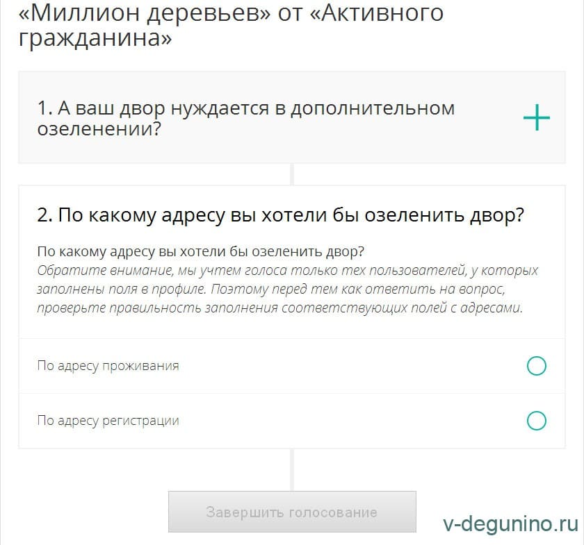 «Миллион деревьев» весна 2016 года. Голосование на «Активном гражданине»