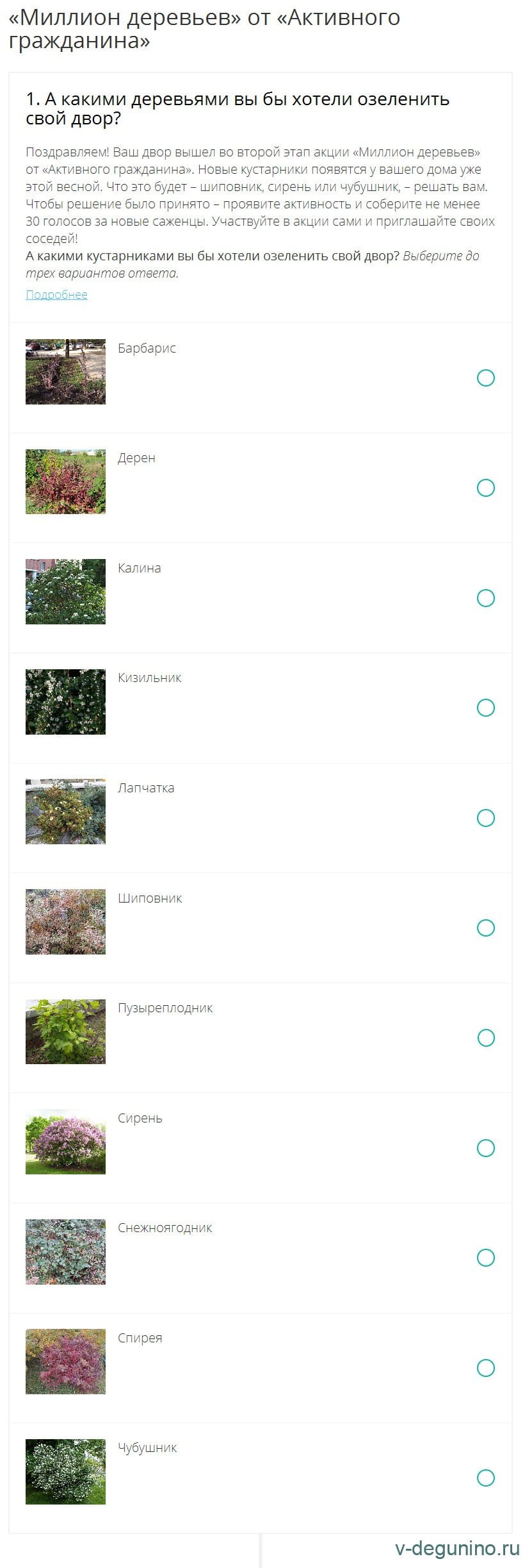 Начался 2-й этап голосования на Активный Гражданин по выбору посадочного материала на весну 2016 года по программе Миллион Деревьев в районе ВосточноеДегунино