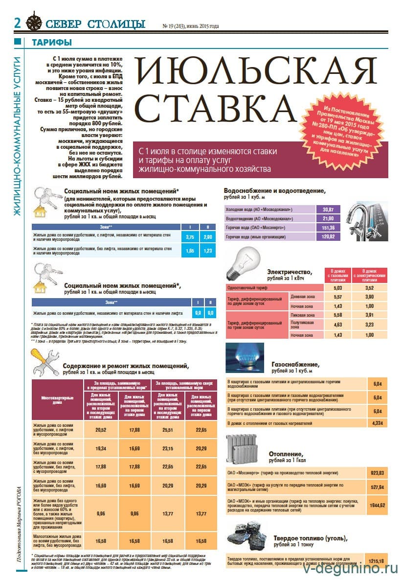 С 1 июля 2015 г. увеличиваются Тарифы на жилищно-коммунальные услуги в Москве