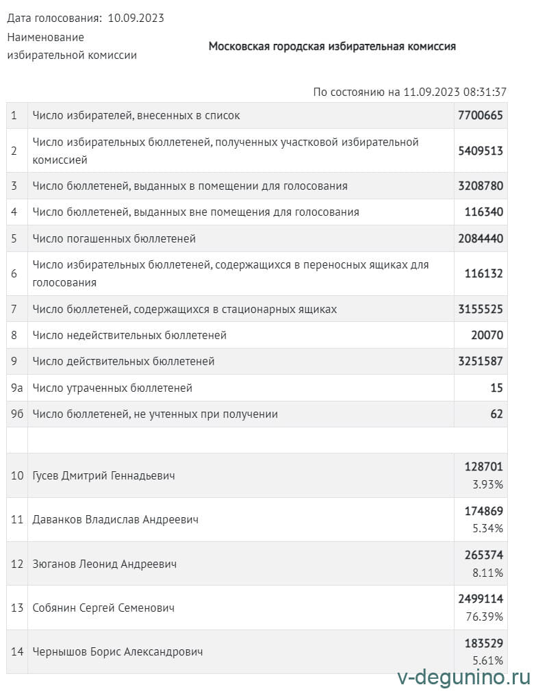 Итоги выборы мэра Москвы 2023 год