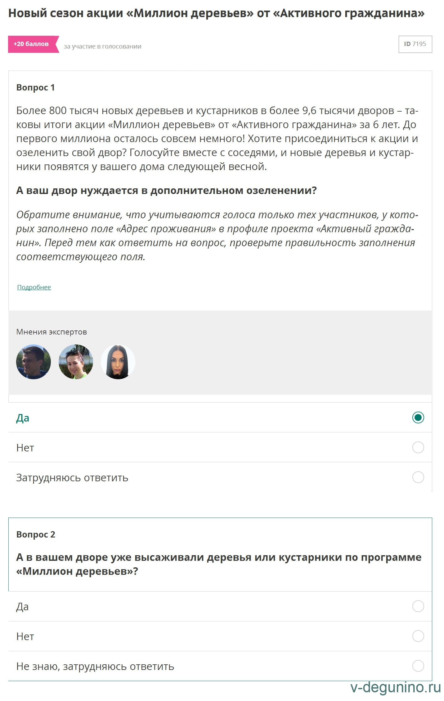 На первом жители голосуют за дополнительное озеленение своего двора. По итогам будет составлен рейтинг дворов по количеству участников и по количеству голосов за озеленение. Во дворах, набравших наибольшее количество голосов, специалисты проведут обследование и оценят возможность посадки новых деревьев и кустарников.