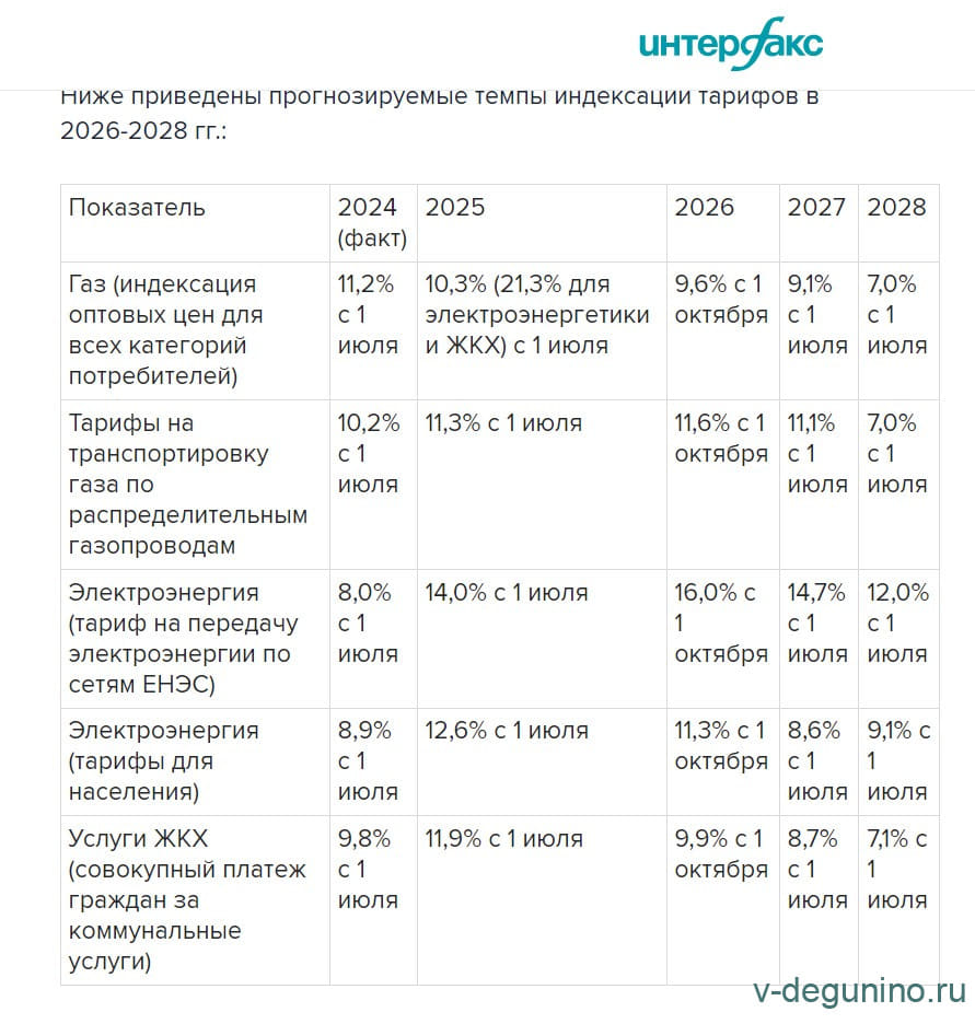 В предыдущем прогнозе был заложен рост тарифов ЖКХ с 1 июля 2027 года на 7,9%, с 1 июля 2028 года - на 5,9%.