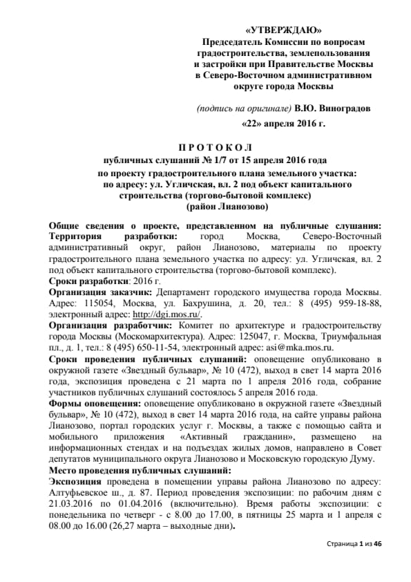 - общие сведения о сроках, месте проведения и участниках публичных слушаний;