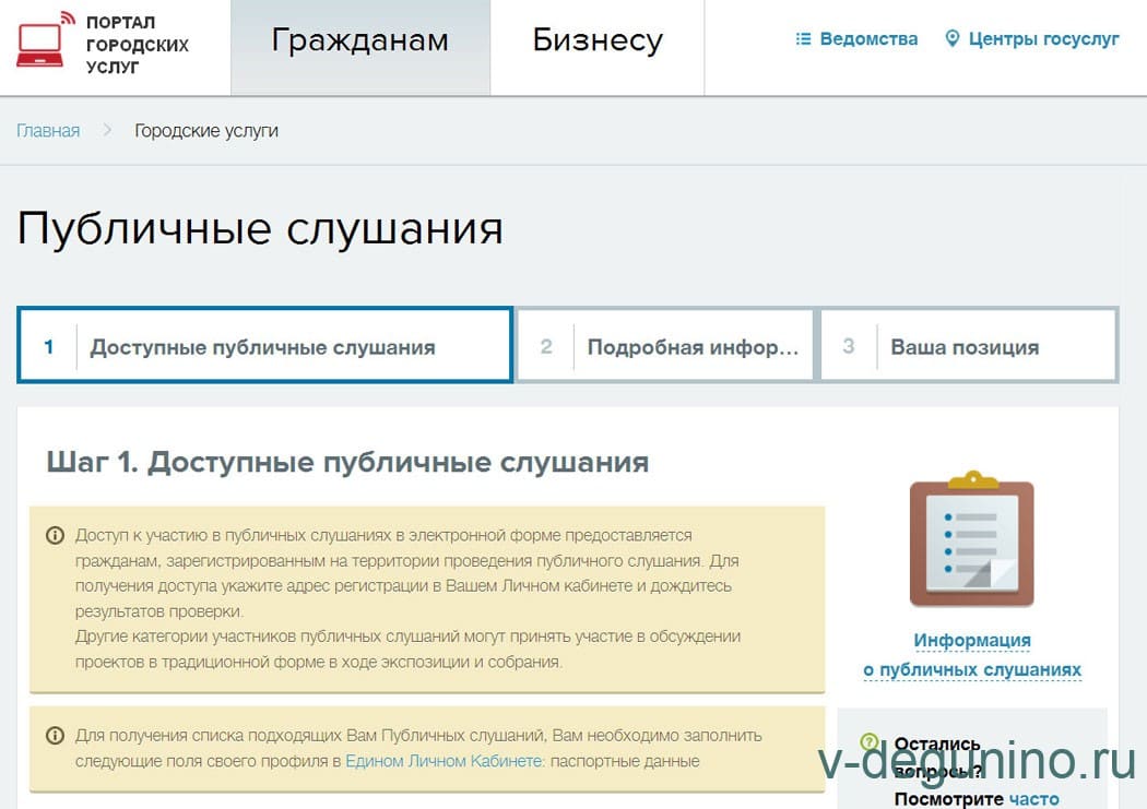 1.3. Участие в публичных слушаниях с использованием общегородских информационных сервисов осуществляется жителями города Москвы, прошедшими в установленном порядке процедуру регистрации на Портале государственных и муниципальных услуг и получившими доступ к подсистеме Портала государственных и муниципальных услуг "Личный кабинет".