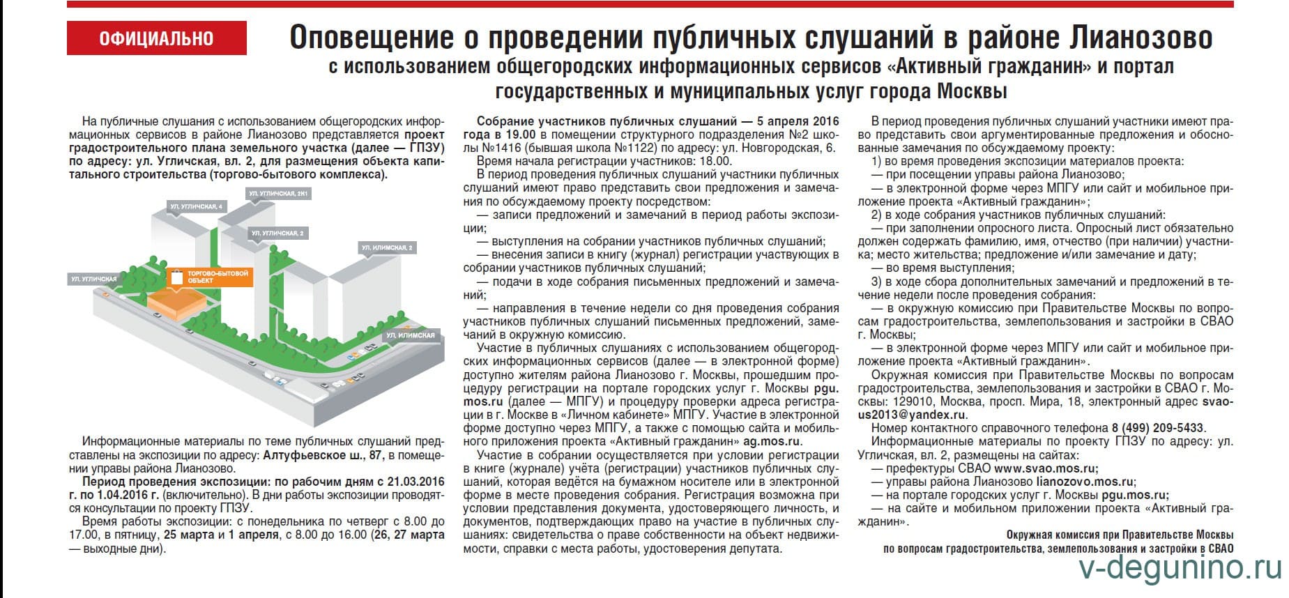 1.1. Публичные слушания проводятся в соответствии с Градостроительным кодексом города Москвы в целях учета интересов физических и юридических лиц при осуществлении градостроительной деятельности, соблюдения прав человека на благоприятные окружающую среду и условия жизнедеятельности с использованием общегородских информационных сервисов, в том числе создаваемых в рамках проекта "Активный гражданин", включая использование сайта проекта "Активный гражданин" в информационно-телекоммуникационной сети Интернет, мобильного приложения проекта "Активный гражданин" и иных информационных сервисов, используемых для обеспечения функционирования проекта "Активный гражданин" (далее - проект "Активный гражданин"), а также с использованием государственной информационной системы "Портал государственных и муниципальных услуг (функций) города Москвы" (далее - Портал государственных и муниципальных услуг) и других общегородских информационных систем и ресурсов.